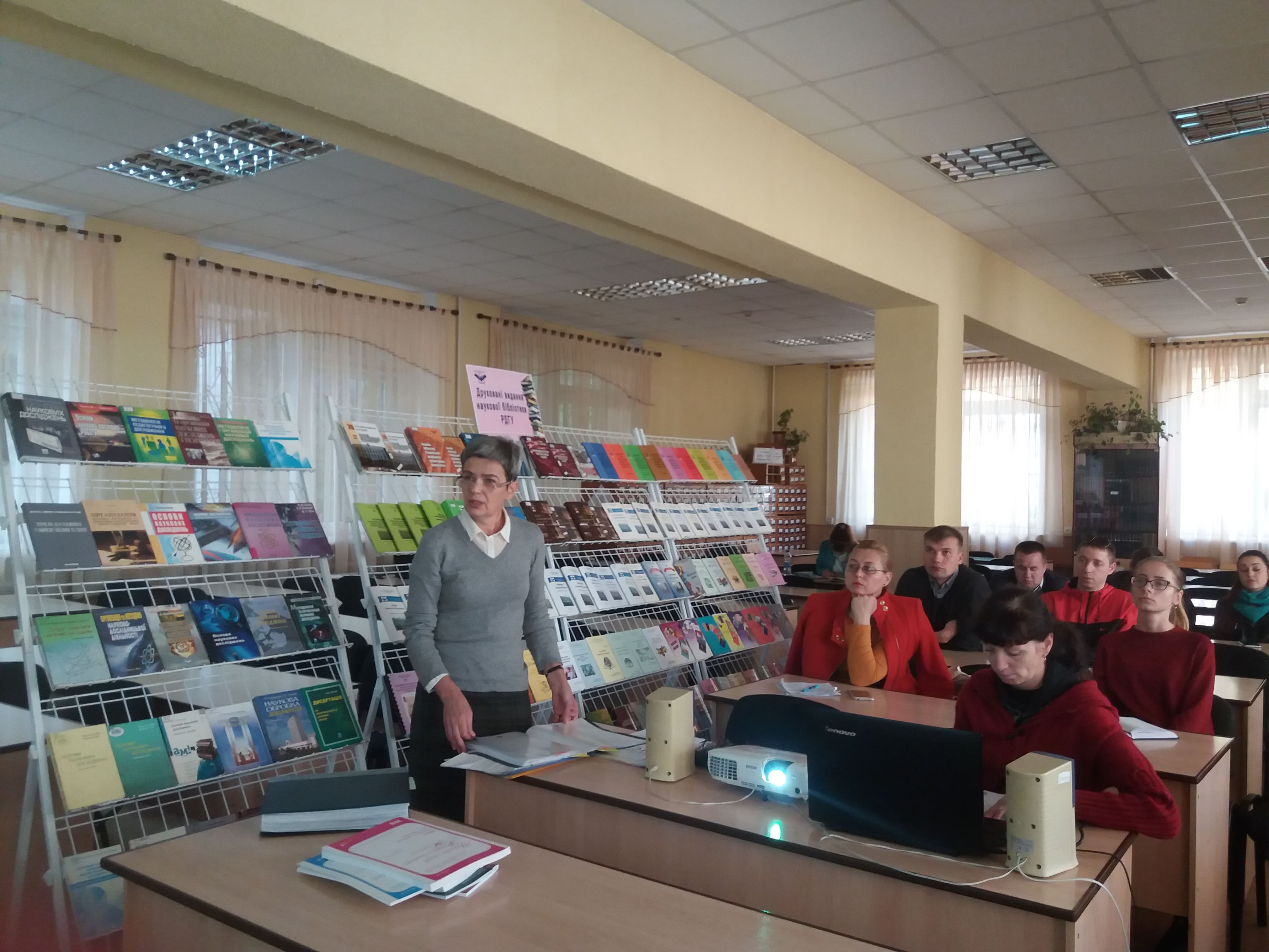 * інформаційні заходи, довідки, консультації здобувачам вищої освіти, аспірантам, молодим науковцям в роботі з Міжнародними наукометричними базами, створенням і редагуванням запису та підтримки профілю науковця у реєстрі унікальних  ідентифікаторів ORCID,  оформленні списків використаних джерел до книг, статей, дисертаційних робіт науковців, кваліфікаційних робіт (бакалаврських, магістерських) здобувачів вищої освіти за державними та Міжнародними стилями оформлення наукових публікацій тощо;