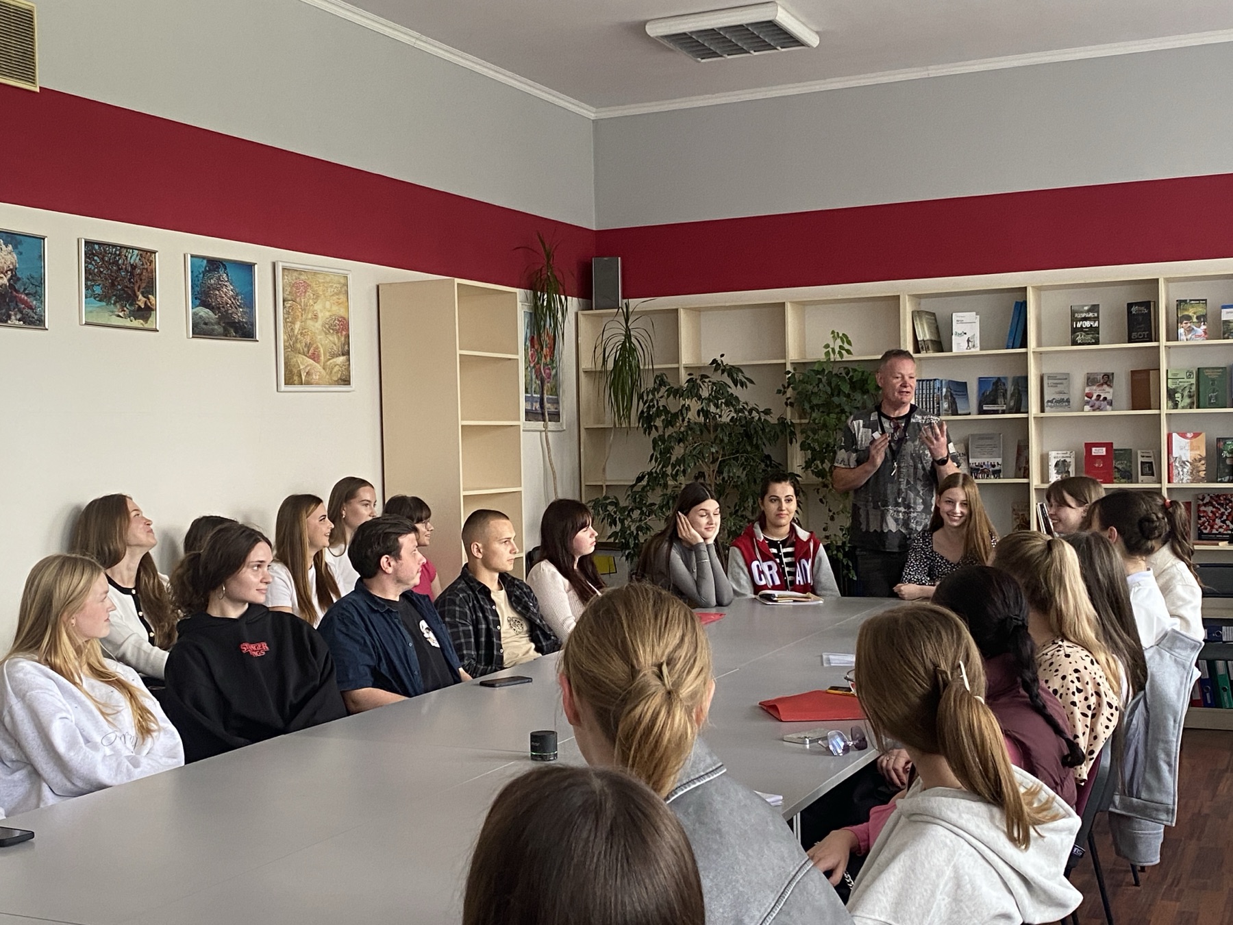 У рамках свого візиту Андрю Сендфорд провів практичне заняття для студентів-філологів. Захід був спрямований на вдосконалення їхніх мовних навичок. Учасники обговорювали актуальні теми, практикували вимову та виконували творчі завдання. Такий формат сприяв не лише поглибленню знань, а й розвитку креативності, що є важливим елементом сучасної освіти.