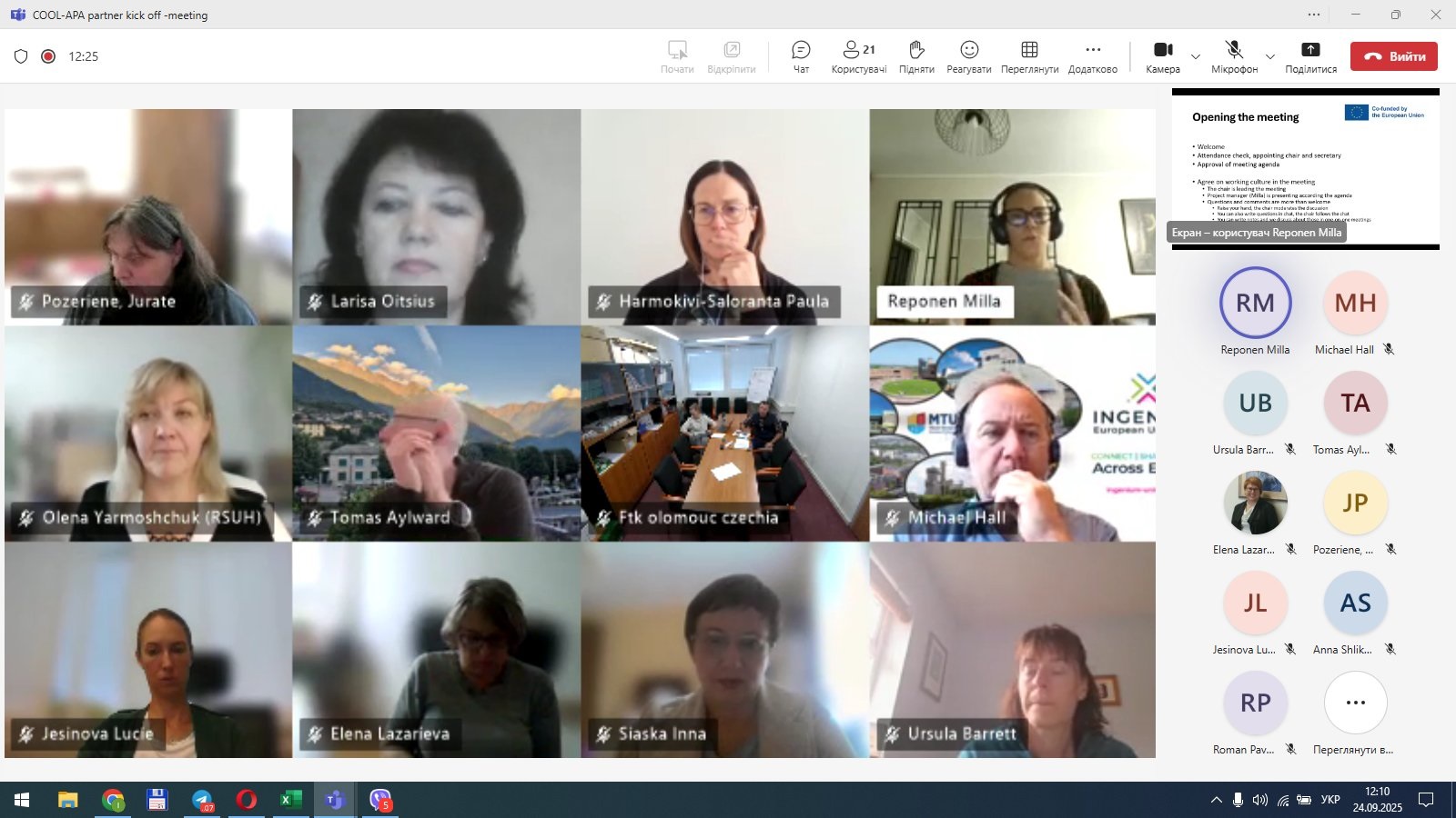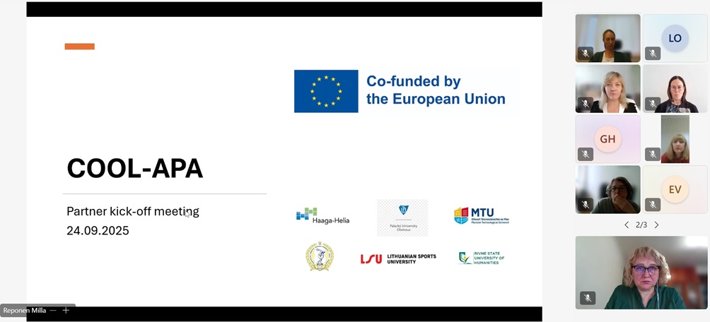 24 вересня 2025 року відбулася стартова онлайн-зустріч партнерів міжнародного проєкту COOL-APA 2025-1-FI01-RF220-HED-000357318 (Спільне онлайн- та очне навчання з адаптивної фізичної активності), що реалізується за підтримки Програми Erasmus+ (CBHE).