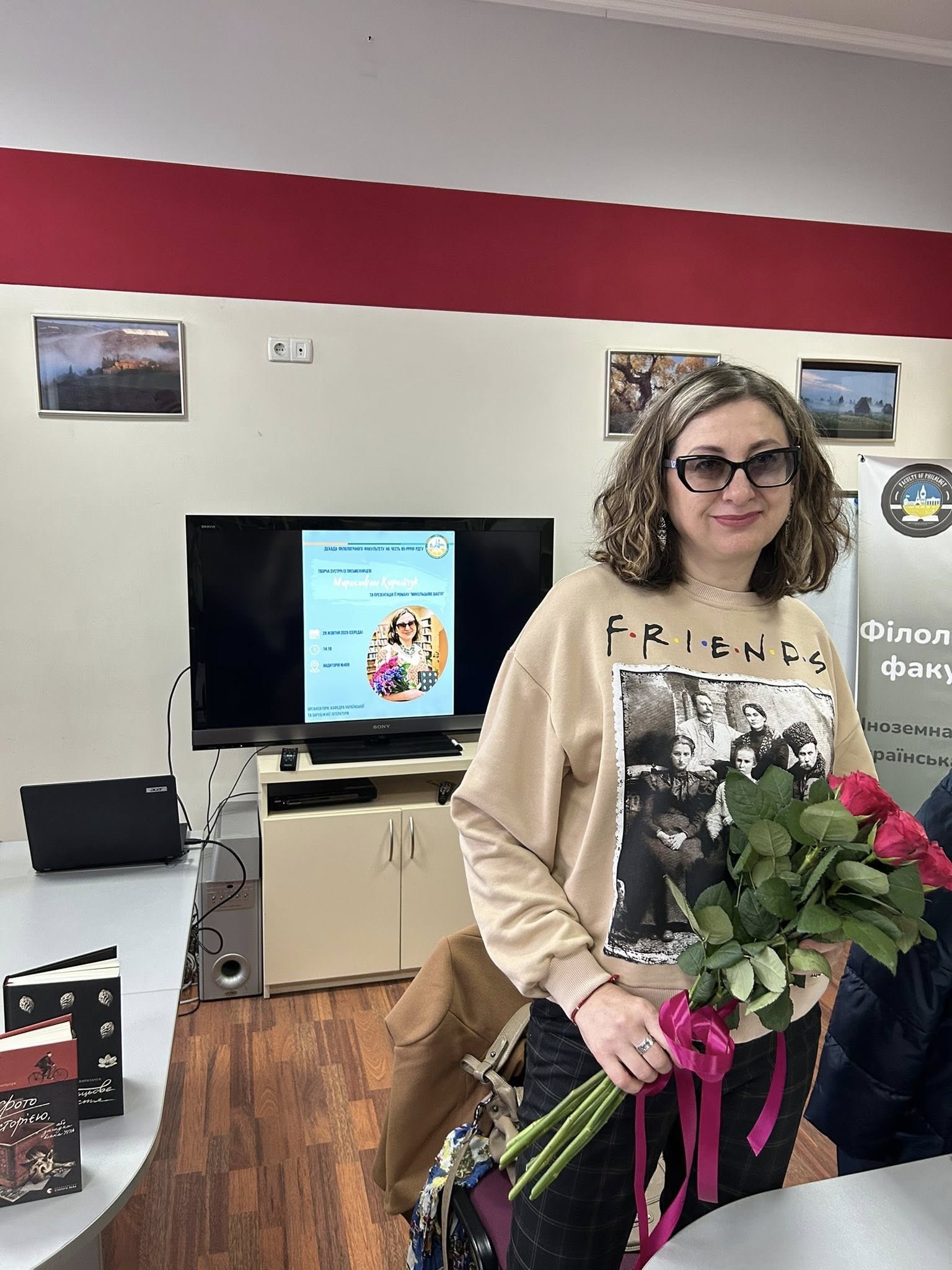 29 жовтня на філологічному факультеті з ініціативи кафедри української та зарубіжної літератури в межах декади філологічного факультету, присвяченої 85-річчю РДГУ,відбулася творча зустріч із випускницею факультету, письменницею Мирославою Кирильчук та презентація її роману «Микольцьове щастя».