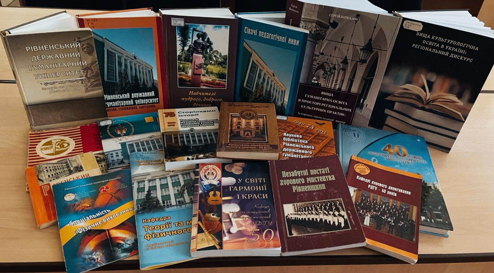 Час невпинно біжить, залишаючи прекрасні спогади, а пам’ять береже найдорожче. Пролетіли студентські роки та життя в праці не одного покоління випускників, викладачів, співробітників університету. За 85-річний історичний розвиток освітнього закладу його науково-педагогічні працівники стали авторами багатьох видань про історію університету, факультетів, кафедр тощо. Ці видання бібліотека представила в експозиції виставки «Рівненський державний гуманітарний університет: віхи історії».