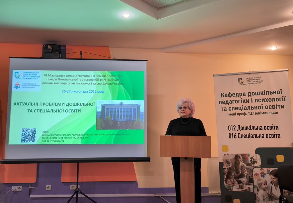 26-27 листопада в Рівненському державному гуманітарному університеті відбулася велика наукова подія, присвячена пам’яті професора Т. І. Поніманської та 60-річчю кафедри дошкільної педагогіки і психології та спеціальної освіти – VІ Міжнародні педагогічні читання «Актуальні проблеми дошкільної та спеціальної освіти».