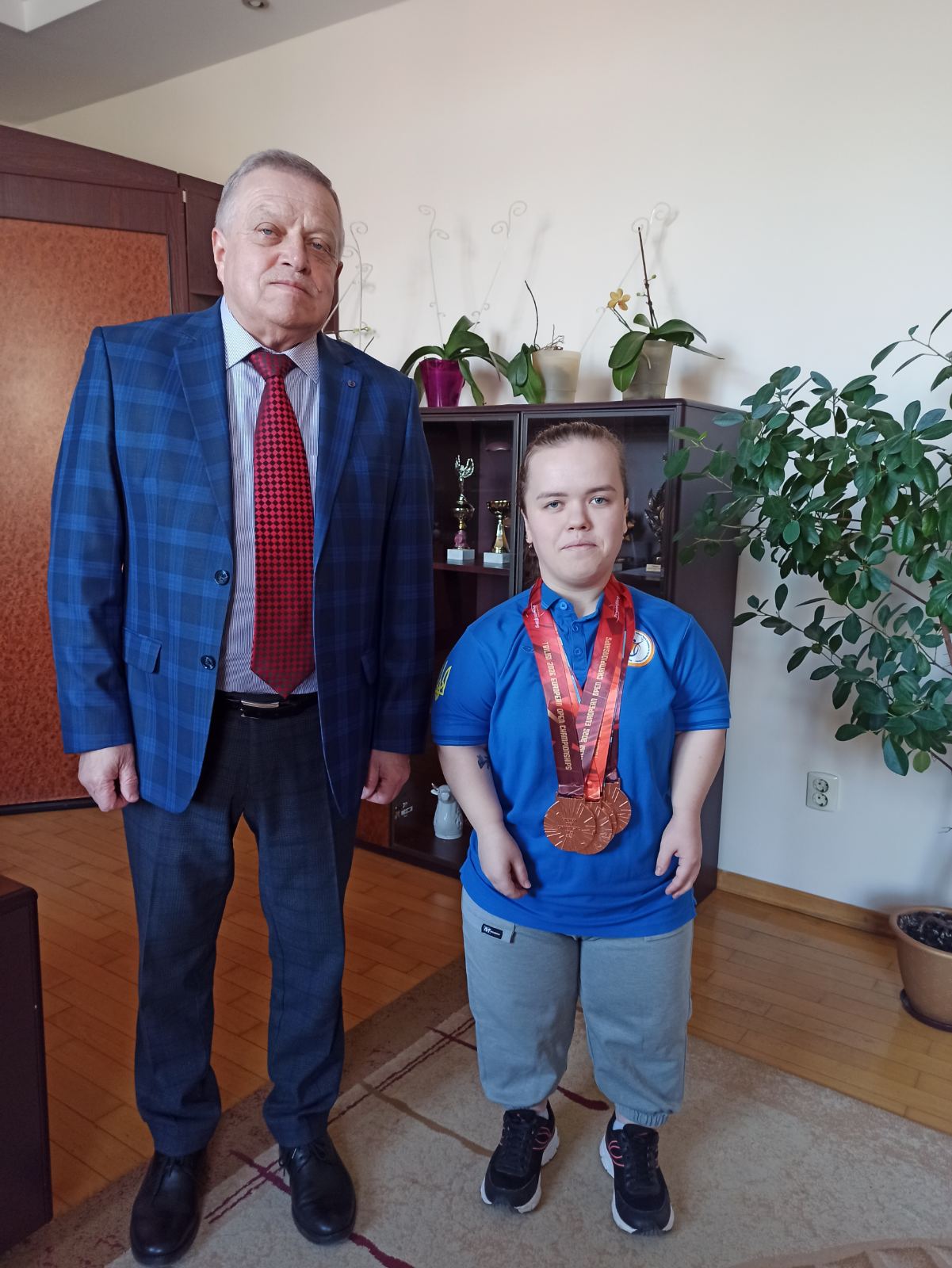 З нагоди успішного виступу відбулася зустріч в.о. ректора університету Романа Павелківа з Галиною Вабіщевич. Під час зустрічі керівник університету привітав спортсменку з вагомим міжнародним досягненням, подякував за гідне представлення України та університету на європейській спортивній арені і побажав подальших спортивних перемог.