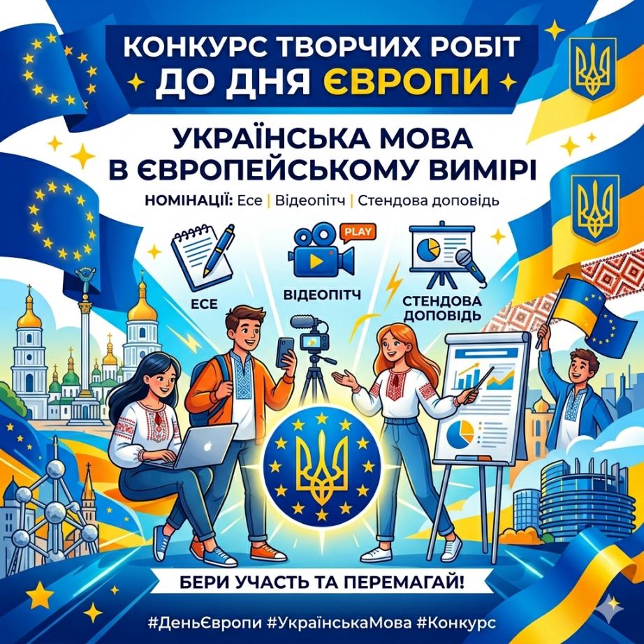 У межах проєкту відбудеться конкурс творчих робіт, що передбачає презентацію власного бачення ролі української мови як важливого чинника європейської ідентичності України.
