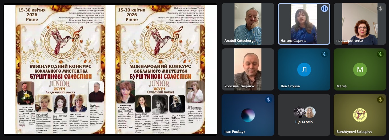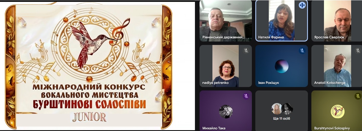 Урочиста церемонія відкриття Міжнародного конкурсу вокального мистецтва «Бурштинові солоспіви-JUNIOR» відбулася в онлайн-форматі. Перший тур конкурсу також буде проведено дистанційно. Натомість другий етап прослуховування конкурсних програм – очно, у Концертній залі Рівненського музичного фахового коледжу РДГУ. Свято вокального мистецтва розгорнеться 24-25 квітня. Кульмінацією другого дня стане нагородження переможців і гала-концерт.