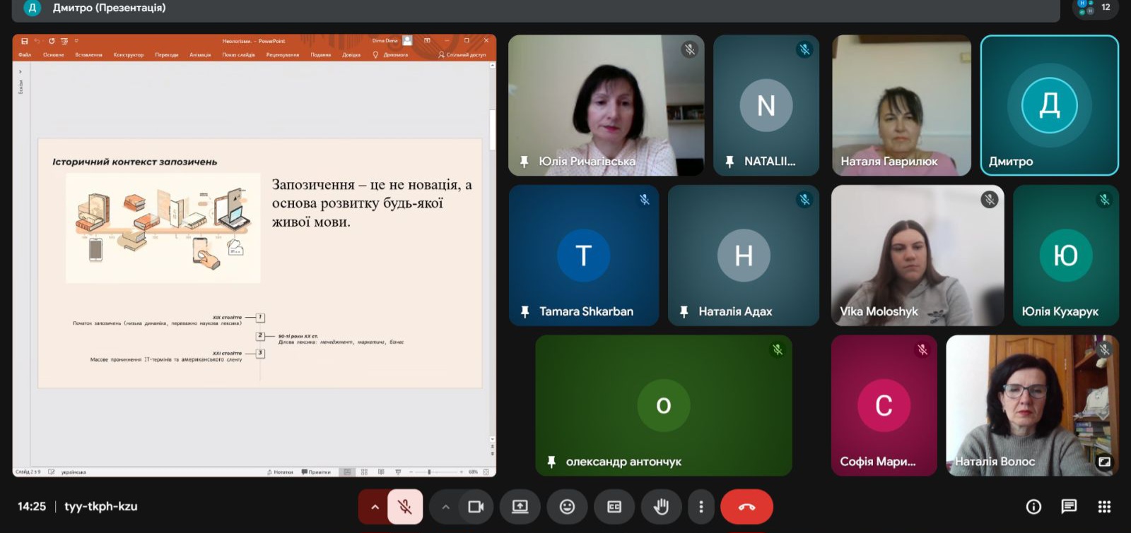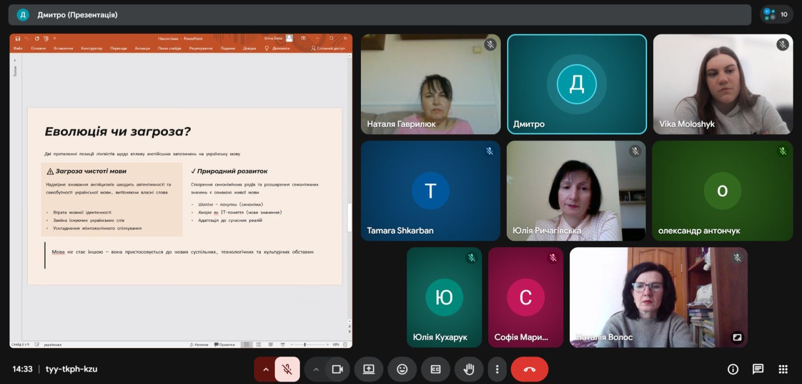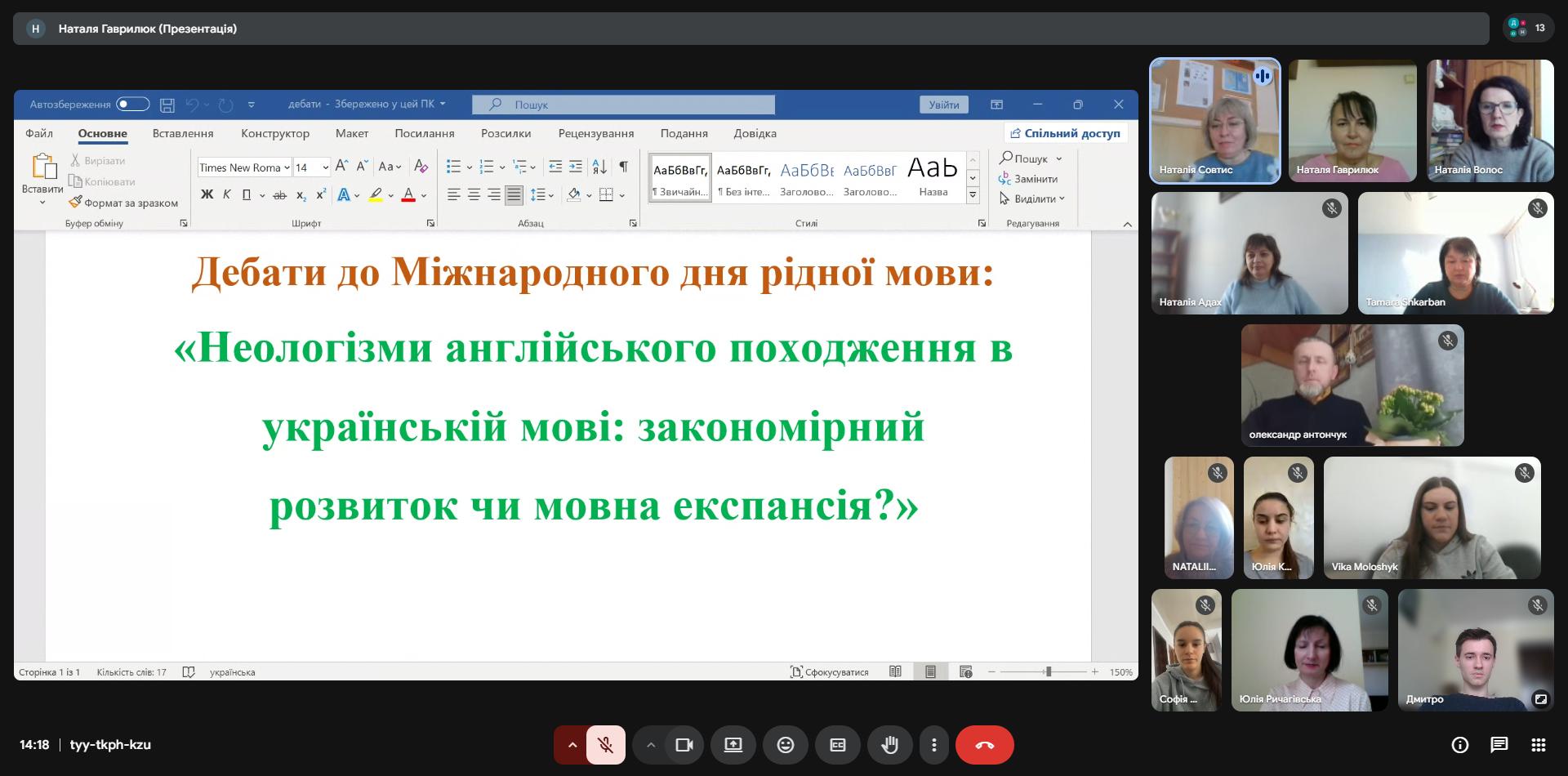 Яскравим завершенням циклу заходів стала дискусія, організована неографічною лабораторією «NEOLEX-Рівне» та магістрантами філологічного факультету. Учасники дебатували на тему «Неологізми англійського походження в українській мові: закономірний розвиток чи мовна експансія?». Під час дебатів прозвучали як аргументи на користь запозичень, так і застереження від їхнього засилля. З одного боку, учасники доводили, що мова – це живий організм, а нові слова англійського походження допомагають швидкій комунікації в IT, бізнесі та науці, заповнюючи прогалини, для яких у нас поки що немає лаконічних відповідників; з іншого – застерігали від надмірного запозичення, наголошуючи, що безконтрольна «експансія» розмиває ідентичність мови та витісняє чудові українські синоніми, а також ускладнює взаєморозуміння між різними поколіннями. Цікавою та емоційною виявилася дискусія про примарну престижність та маніпулятивні аспекти запозичень. Підсумок дебатів: запозичення властиві будь-якій мові, але важливо дотримуватися балансу і використовувати їх тільки тоді, коли в мові немає точного відповідника для позначуваного поняття, а ще краще – творити власні нові слова на питомій лексичній основі.
